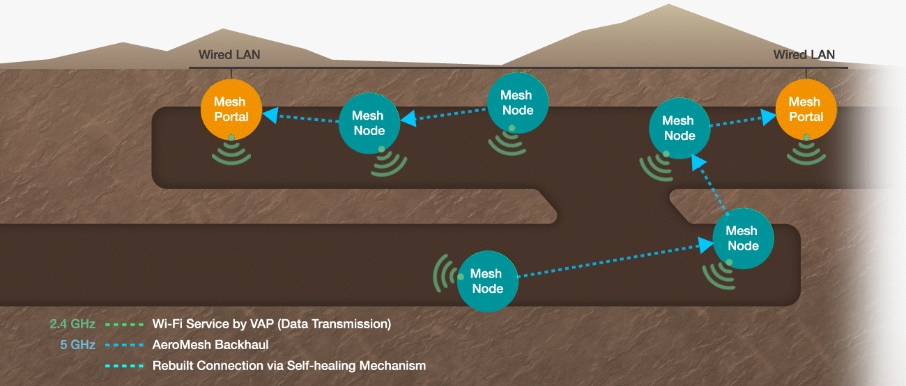 Moxa의 AeroMesh 자체 형성 기술은 배선이 어려운 지역에서 메시 네트워크를 위한 최적의 무선 경로를 지능적으로 찾아 설정함으로써 케이블링 비용을 줄이고 Wi-Fi 백홀 배포에 드는 시간과 노력을 절약합니다.
